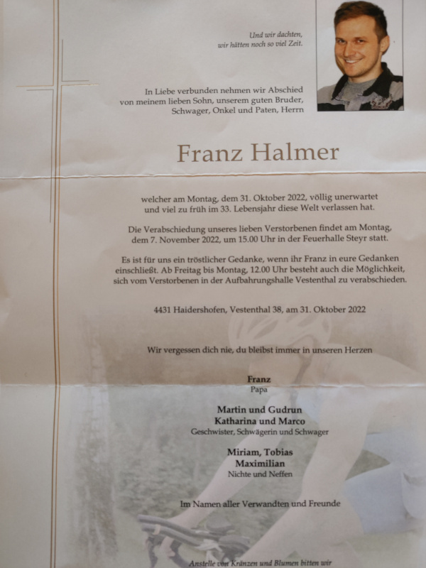 Tief bewegt erhielten wir die traurige Nachricht vom Tod unseres langjährigen Mitgliedes der Triathlon- und Rennradsektion Franz Halmer