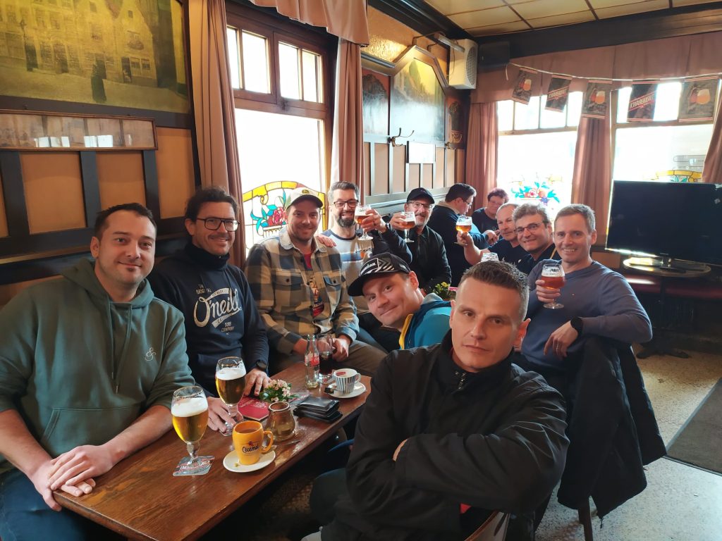 Dennoch war es für alle ein einmaliges Erlebnis, einige der berühmtesten Radsportberge, auch wenn diese für unser Verständnis eher Hügerl sind, zu befahren; man atmet quasi Radsporthistorie ein. Durchgeschüttelt und tlw. durchgefroren erreichten alle gesund und unverletzt das Ziel in Oudenaarde und fanden sich sofort in das neue Lieblingslokal unserer Helden, „the carillon“, ein und schlürften völlig verdient vom ausgezeichneten belgischen Bier ein paar Gläser. Nach etwa 4h im Carillon ging es dann leider doch nach Hause, zu gemütlich war die hervorragende Stimmung dort.