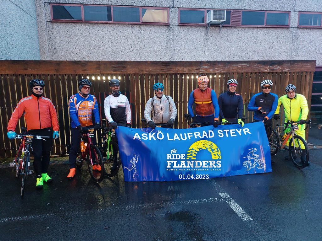 Vergangenes Wochenende fanden sich 10 wagemutige Steyrer in Oudenaarde ein, um eines der größten Radsportevents bestaunen zu dürfen: die Flandernrundfahrt! Am Programm stand am Samstag vor dem Profirennen die Teilnahme an der Radtourenfahrt, wo weitestgehend große Teile des berühmtesten flämischen Rennens abgefahren werden und am Sonntag das Beiwohnen des Monuments. Unter den Mitstreitern befanden sich 6 Laufradler: Kassier Kocher, Schriftführerstellvertr. Schörki, AV Fredl, Lobster (Harti), Webmaster Basti und Brunner Jürgen. Die 4 Gäste waren Michael Fabian, Lukas Schörkhuber, Ronald Aigner und Ralf Rothkopf. Donnerstagabend ging es mit zwei Vans los gen Westen.