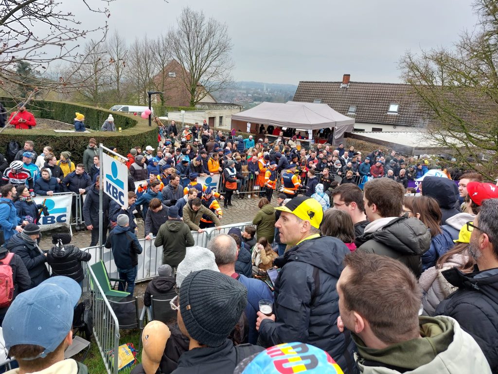 Nach einem unvergessenen Radsporttag am Samstag ging es am Sonntag zum Oude Kwaremont um die Profis anzufeuern. Am Kwaremont angekommen, kämpften wir uns durch Massen frenetischer Fans! Obwohl es noch Stunden dauerte bis die Profis das erste Mal eintreffen sollten waren sämtliche Plätze am Streckenrand belegt. Als blutige Anfänger diesbezüglich schafften wir es dennoch, einen hervorragenden Platz zu ergattern.