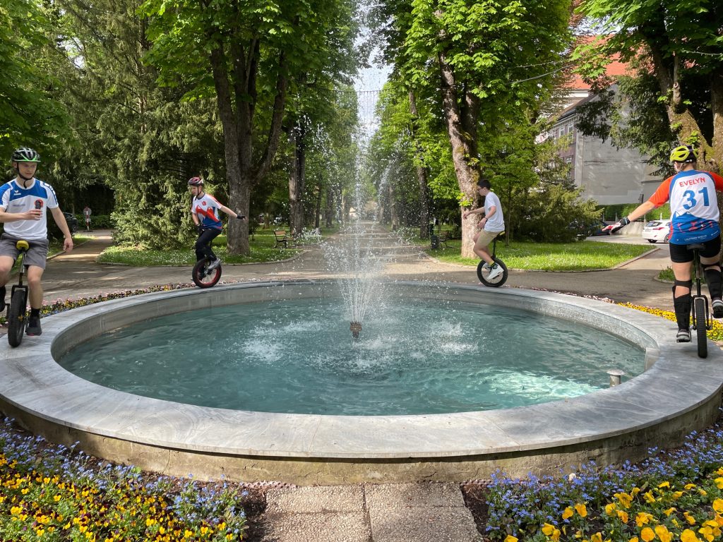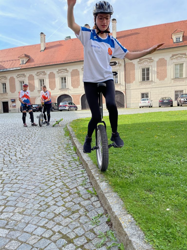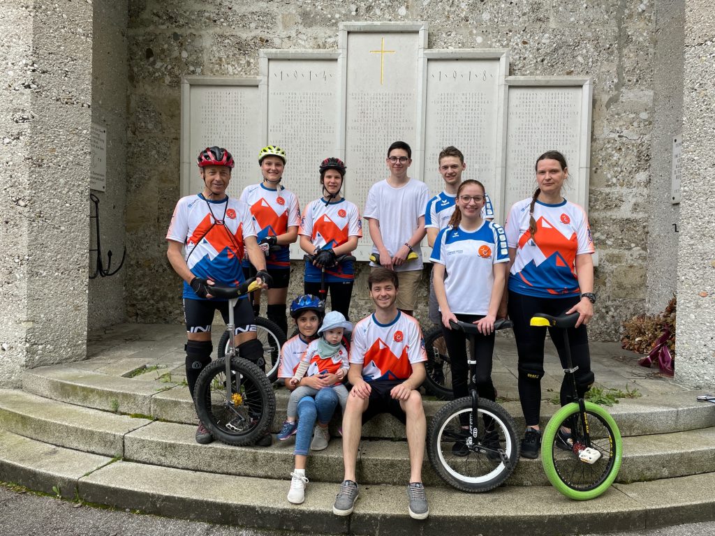 Auf dem Weg wurden einige Hindernisse gemeinsam bewältigt und auch viele Flyer mit Hinweisen für unser Einradhockeyturnier am 28.5, unsere Einradshow beim Steyrer Stadtfest und das Einrad Schnuppertraining am 8.7 verteilt.
