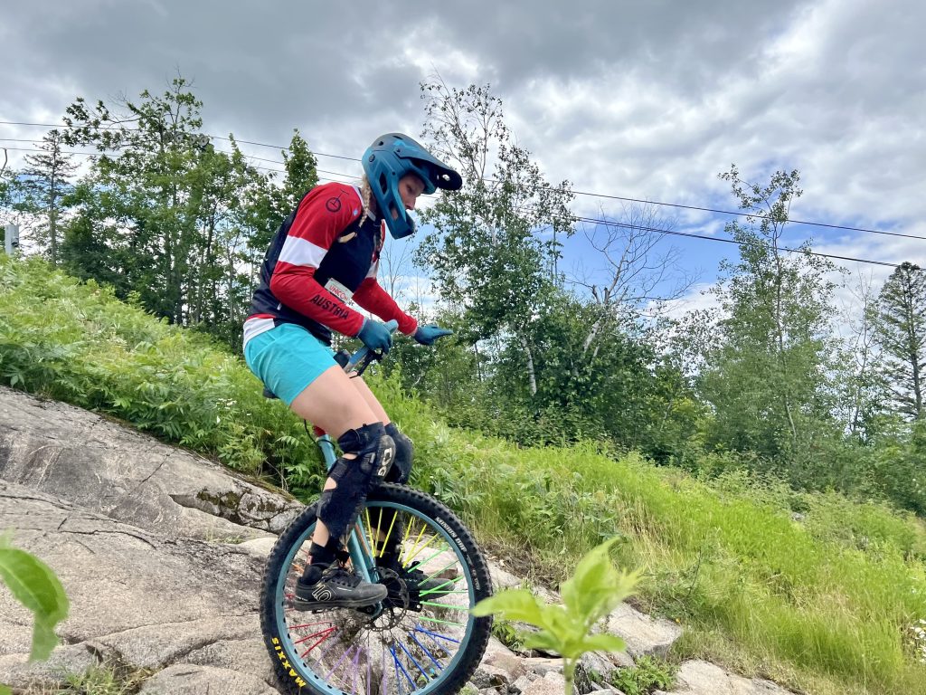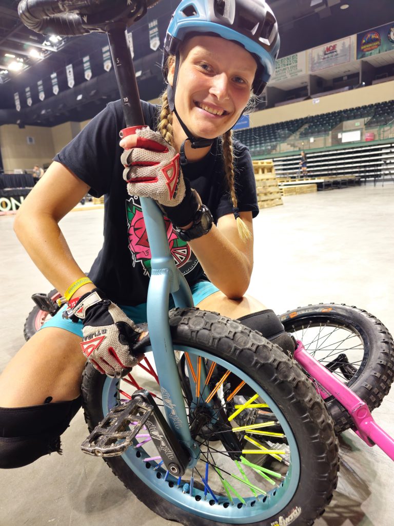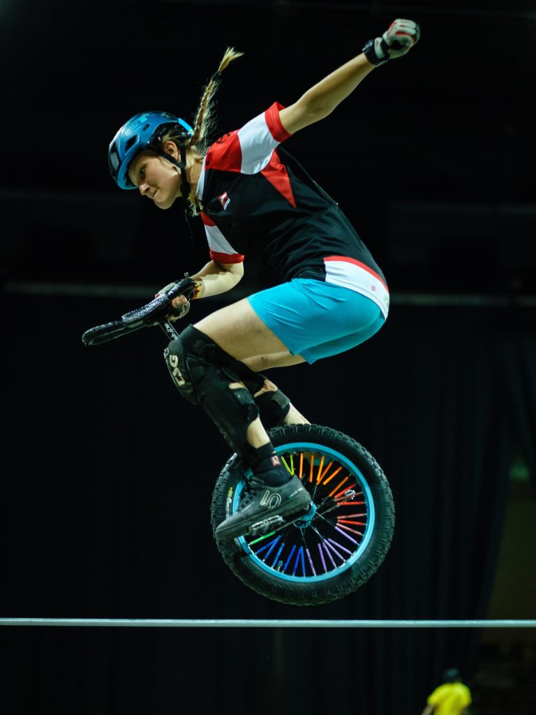 Evelyn gewann in der Expert Kategorie 4x Bronze???? in den Disziplinen: Trial, Hochsprung auf Paletten und über die Stange sowie Weitsprung auf Paletten.