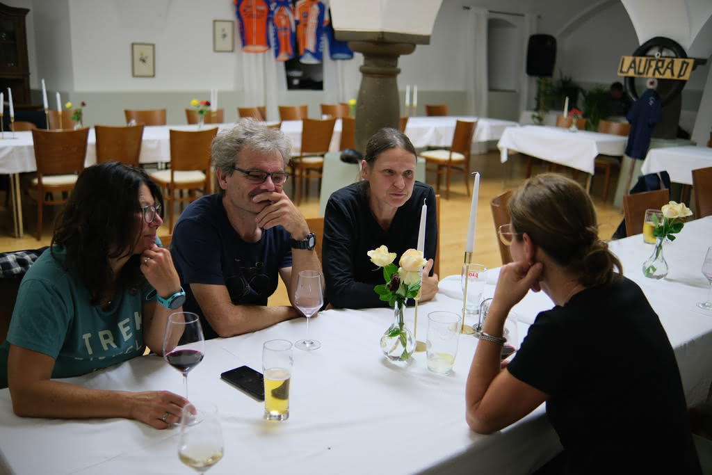 Es war ein sehr gemütlicher Abend, an dem bei einem guten Glas Wein und/oder ein paar Bieren, viele gemeinsame sportliche Erinnerungen der letzten Jahrzehnte nochmals in Erinnerung gerufen und ausgiebigst diskutiert wurden. Aber auch neue sportliche Projekte und Ziele wurden schon geschmiedet. Der Abend fand für einige dann erst mitten in der Nacht ein Ende, und vielleicht wars für den ein oder anderen doch schon in der Früh 😉