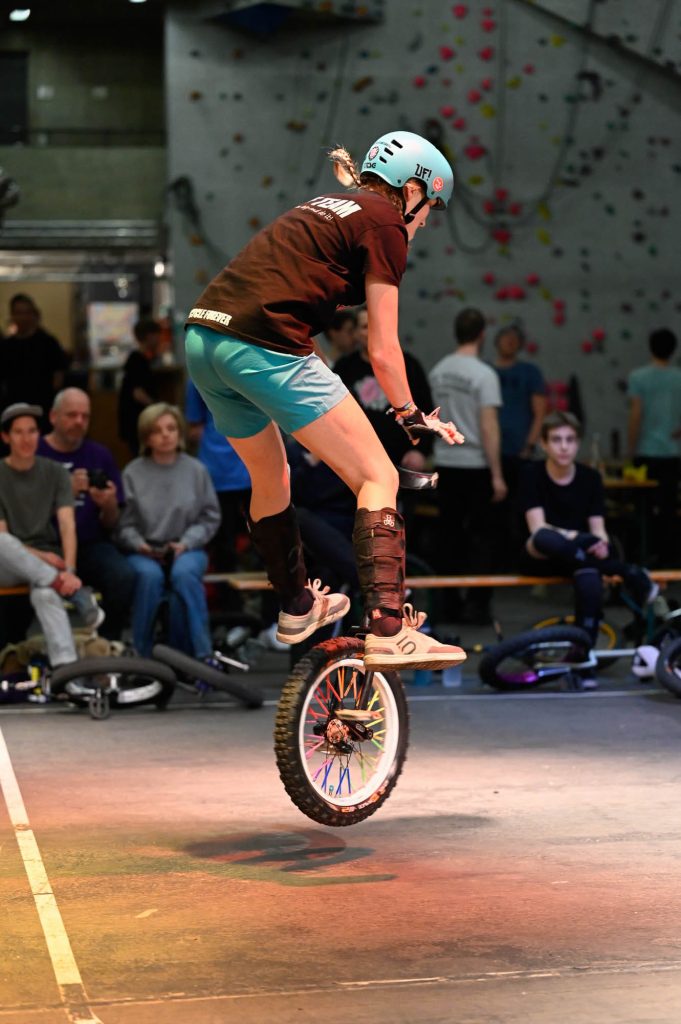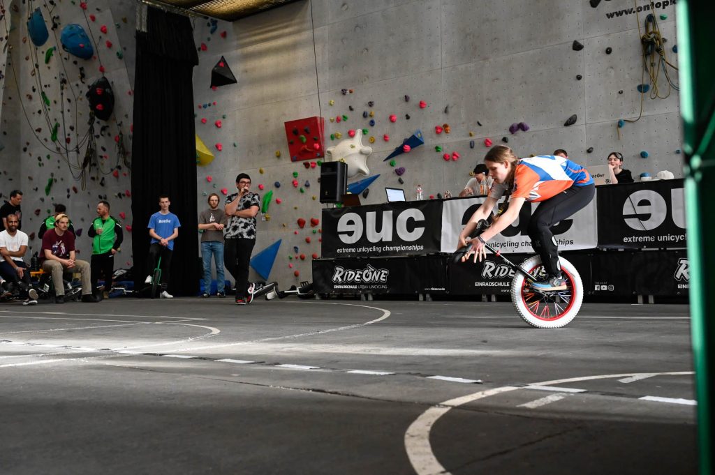 Letztes Wochenende nahmen Ariane und Evelyn Rohn mit großem Enthusiasmus an den Extreme Unicycling Championships (EUC) in den Abenteuerhallen von Köln teil. Die beiden Schwestern traten in den Disziplinen Flatland, Street und Trial an, und das in einem stark besetzten Teilnehmerfeld.